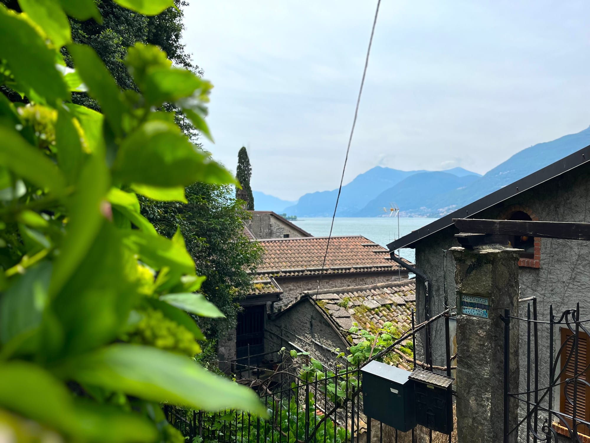Nuo Milano Linatės oro uosto iki šiaurės vakarinėje ežero pakrantėje stūksančio mūsų namelio guglas rodė maždaug pusantros valandos greitkeliu SS36. Bet realiai gavosi beveik dvi su puse valandos dėl spūsčių Milane ir poros sustojimų. Karšta ir jokio lietaus.