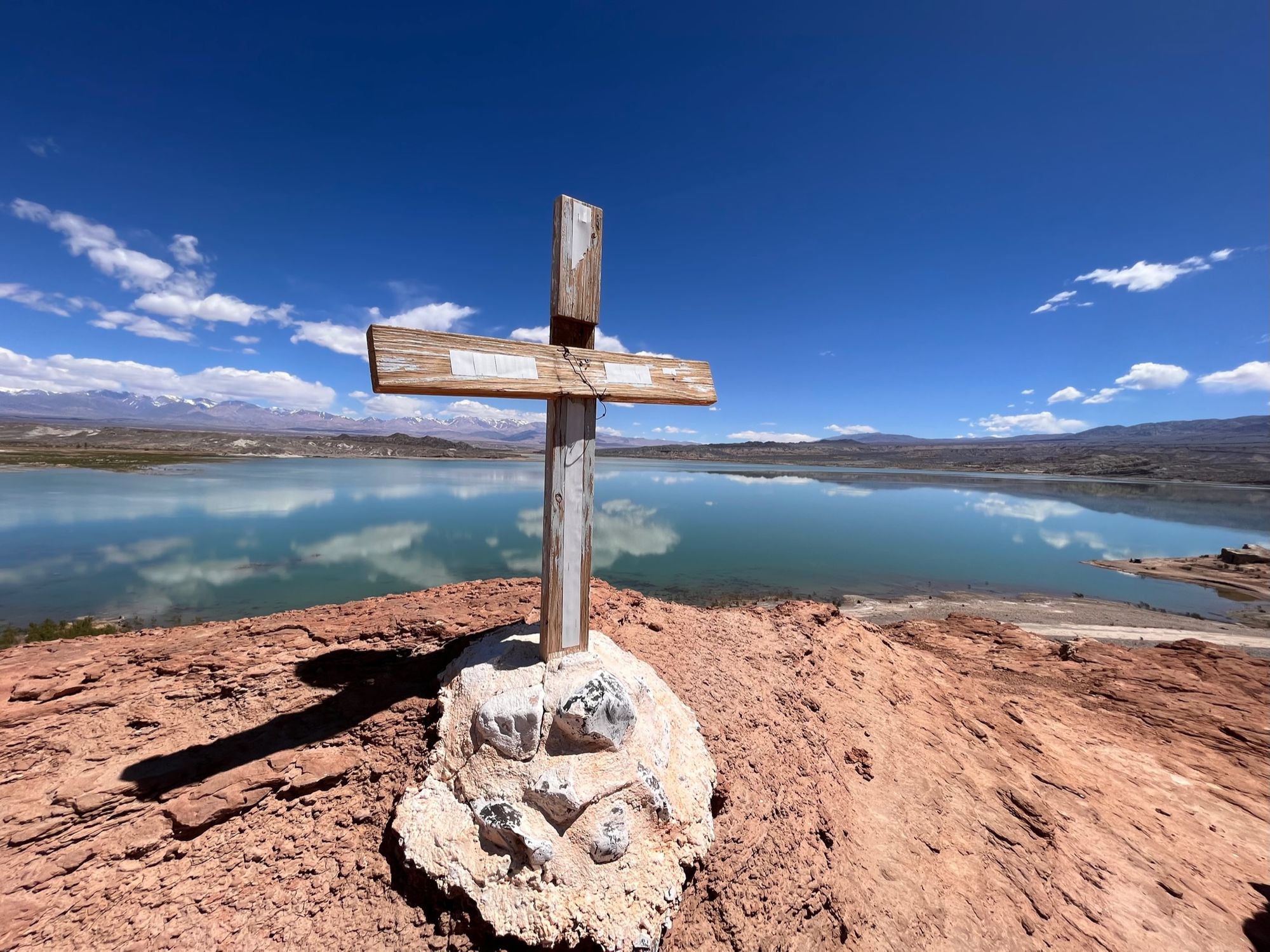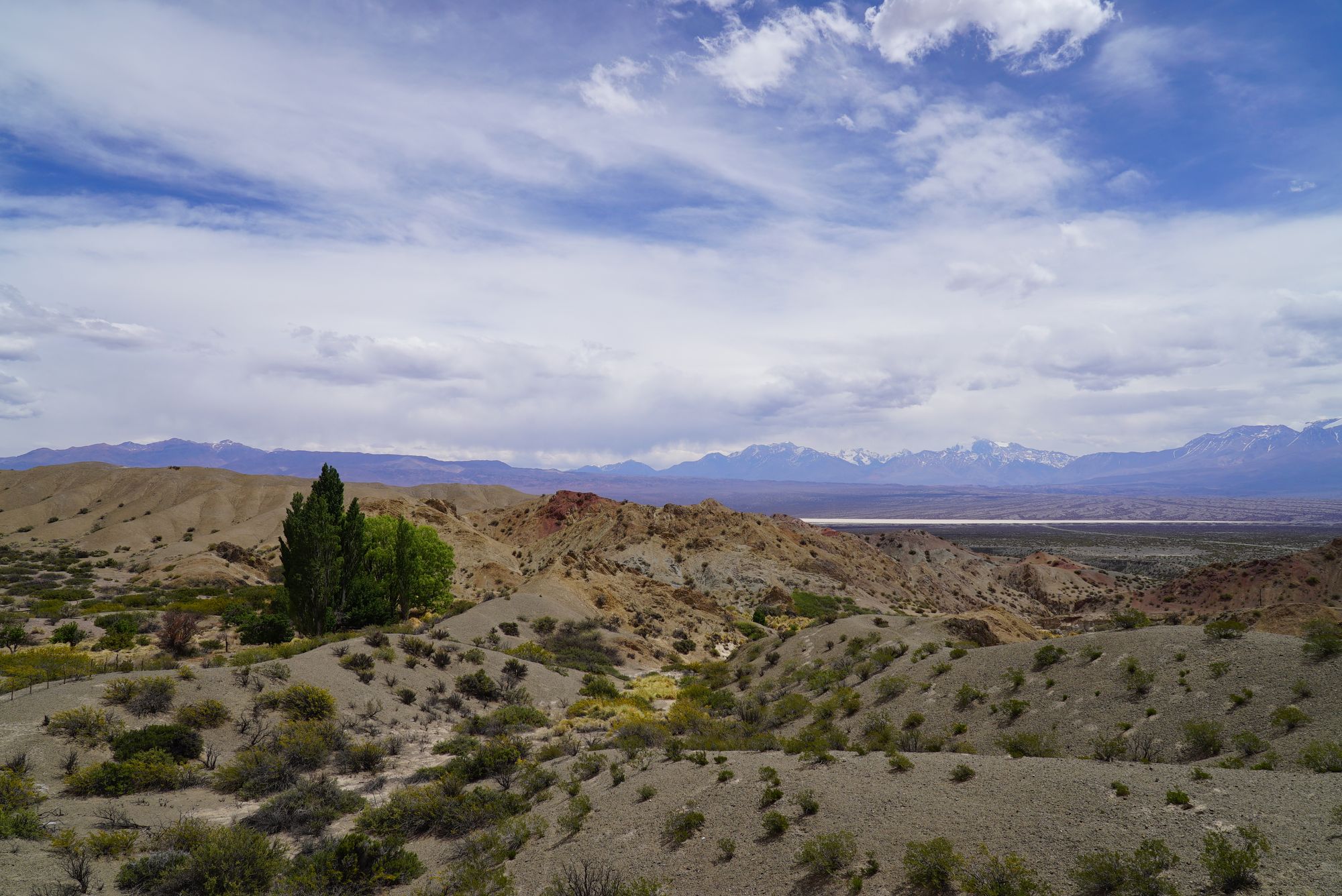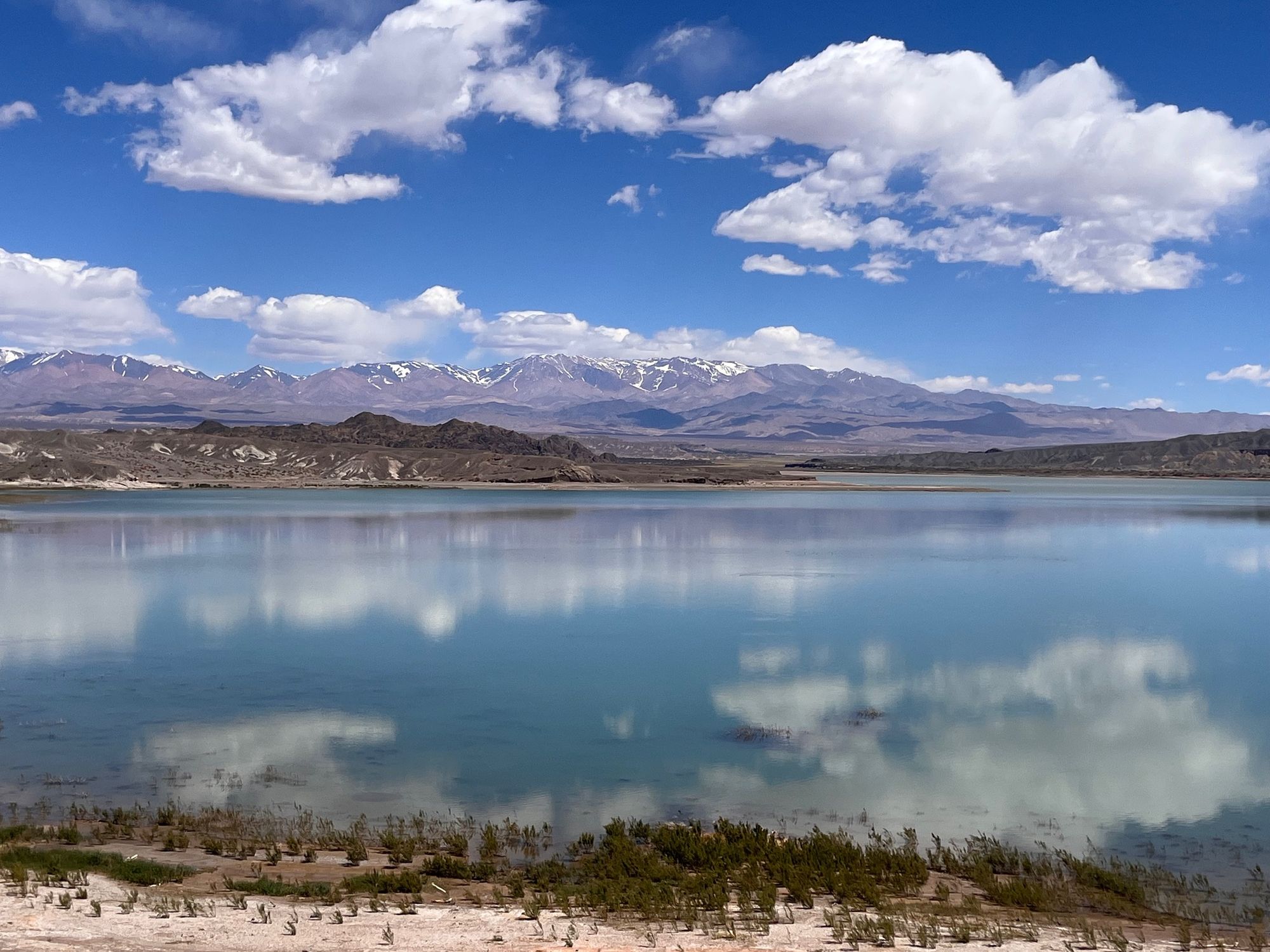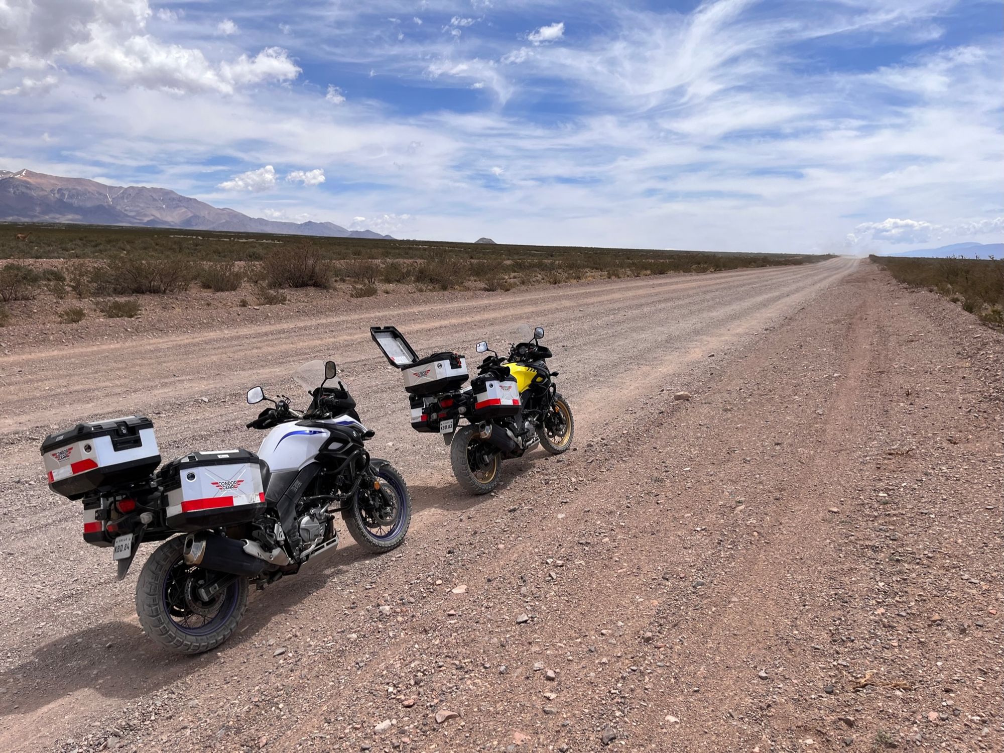 Išvažiavus is Uspallatos atsidūrėme lyg paveiksliuke - kelias tiesus it styga, asfaltas puikus, abipus dykynės, o už jų toli toli kalnai. Erdvės tiek kiek Lietuvoj niekur nematom. Bet kaip visada, ilgai gerai nebūna - asfaltas baigiasi ir prasideda žvyras. Greitis nuo 120km/h krenta iki 50km/h, dairytis nebėr kada, reikia vairuoti. Keletą kartų pravažiuojame besiganančius, berods, gvanakus.