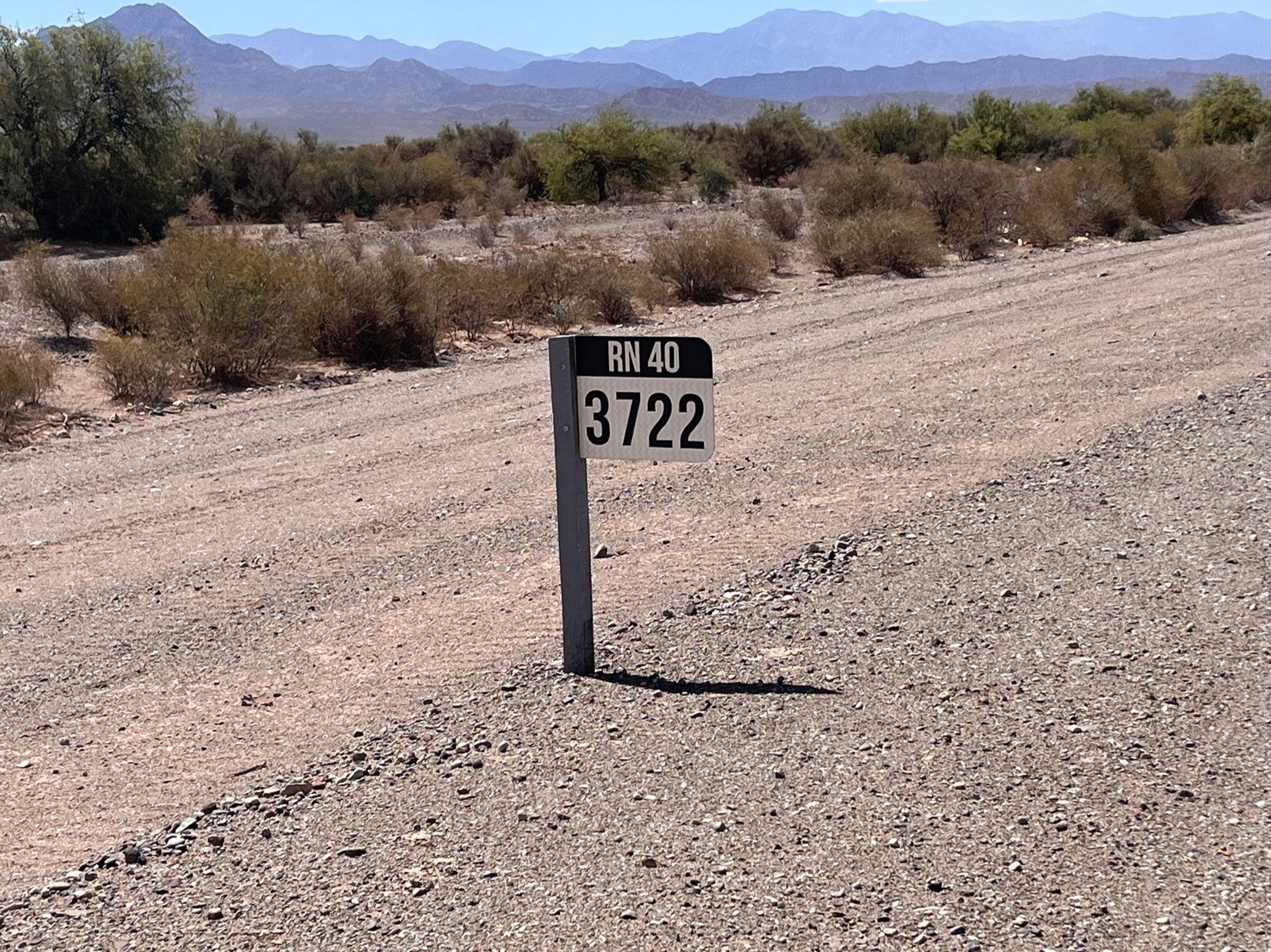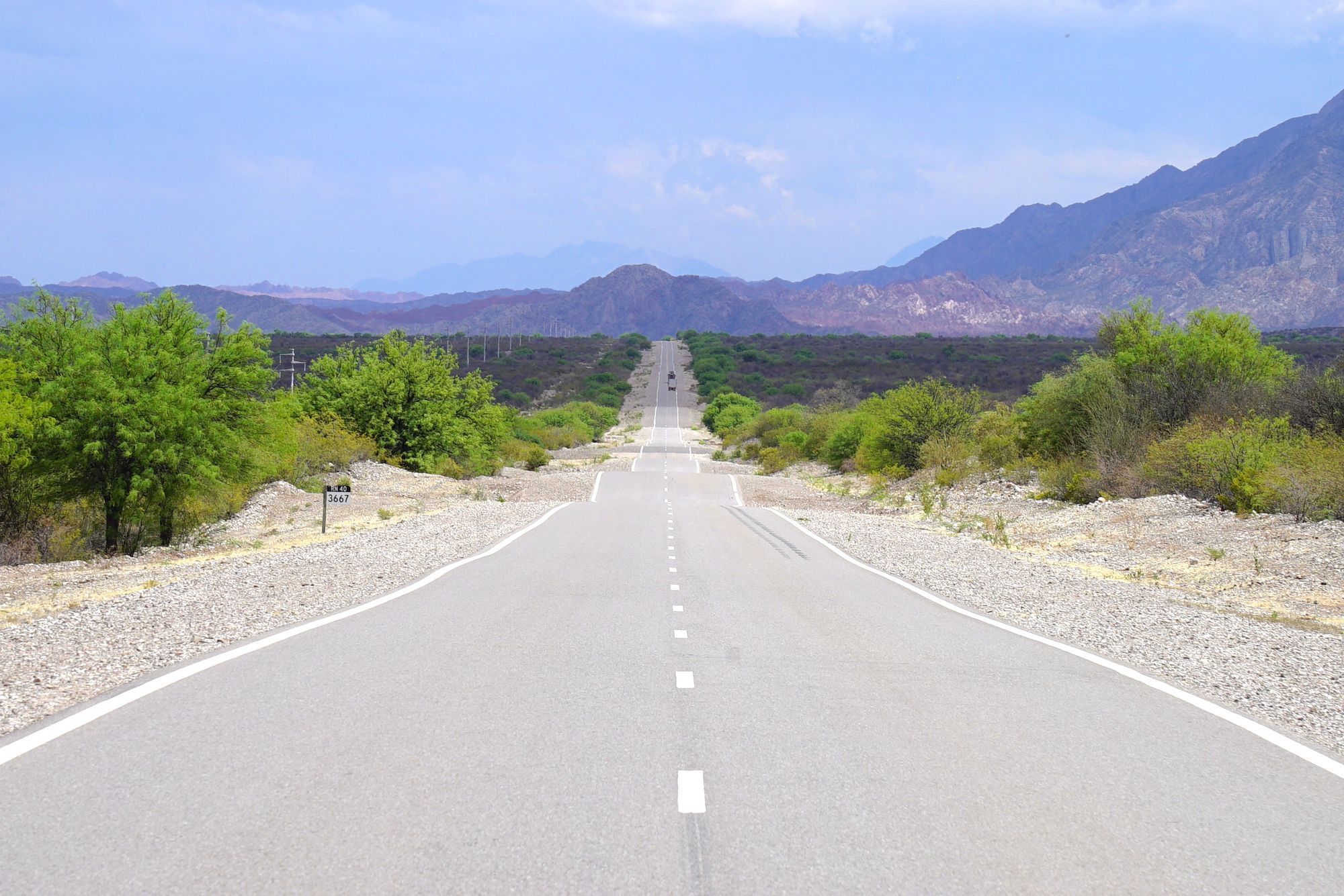 Pagaliau stovime šalikelėje ir žiūrime į nacionalinį Argentinos plentą Nr. 40. Prieš akis - į horizontą nusidriekusi legenda. Virš jos raibuliuoja įkaitęs oras, į padangę kyla dulkių debesys. Šitame kelyje Nr. 40 kalė didžiausias karštis, kokį tik esame patyrę - 40 laipsnių pagal Celsijų. Tokiomis sąlygomis rinkomės ilsėtis tik šešėlyje (jeigu rasdavom), nes spigino nejuokingai. Hidratavomės kiek galėjom - dažniausiai turėdavom apie tris litrus vandens per abu. Nenuvažiavom nė šimto kilometrų, o vanduo baigėsi. Kurį laiką teko kentėt ne tik karštį, bet ir troškulį.