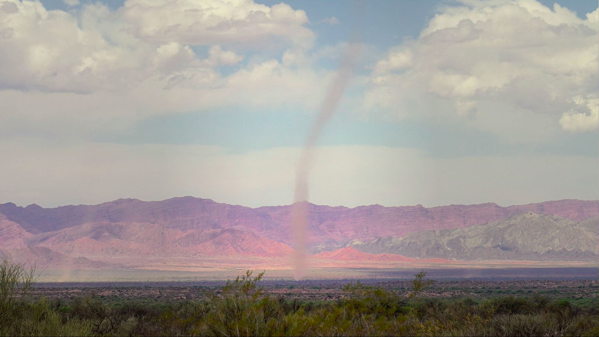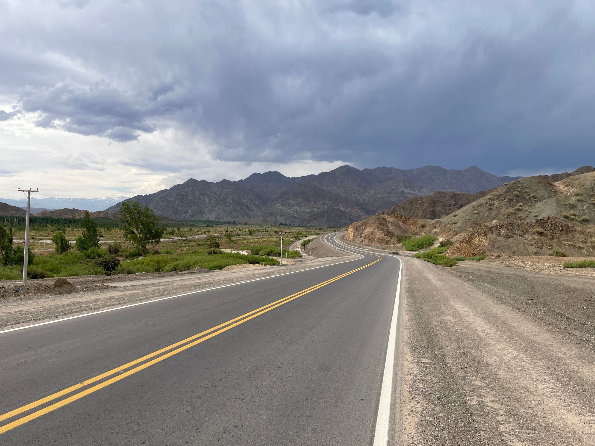 Suskaičiavau 8 viesulus vienu metu einančius vienas paskui kitą ir keliančius dulkes į keliasdešimties metrų aukštį. Mačiau tokį lietų kalnuose, kuris kelia pagarbią baimę. Važiavau tokiais keliais kokiais dar gyvenime nevažiavęs. Ir niekada dar nebuvau patyręs jausmo, kai iš skurdžios augmenijos įspūdingų platybių įvažiuoji į medžiais ir gėlėmis apaugusį miestelį - oazę. Wow. Vos antra diena kelyje, bet abejoju ar bus dar įspūdingesnių.